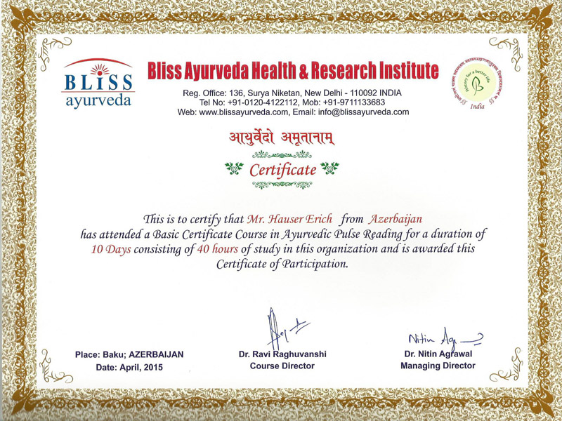 А еще я уже много лет занимаюсь аюрведой, в том числе проходил курсы (сертификат кликабелен), читал книги и тоже имею реальный опыт ее эффективного применения. А кроме того, я много лет занимаюсь йогой. С удовольствием и пользой для себя. Чего и вам советую!